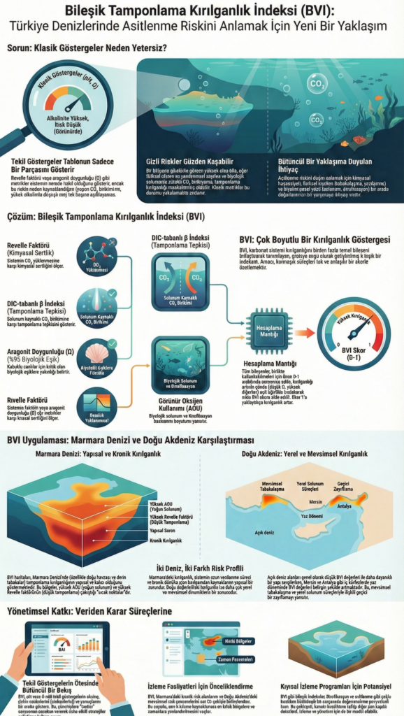 • Erken Uyarı Potansiyeli: BVI, özellikle Marmara gibi sistemlerde asitlenme riskinin doğrudan biyolojik solunum ve organik madde döngüsüyle bağlantısını kurarak erken uyarı işlevi görür.
